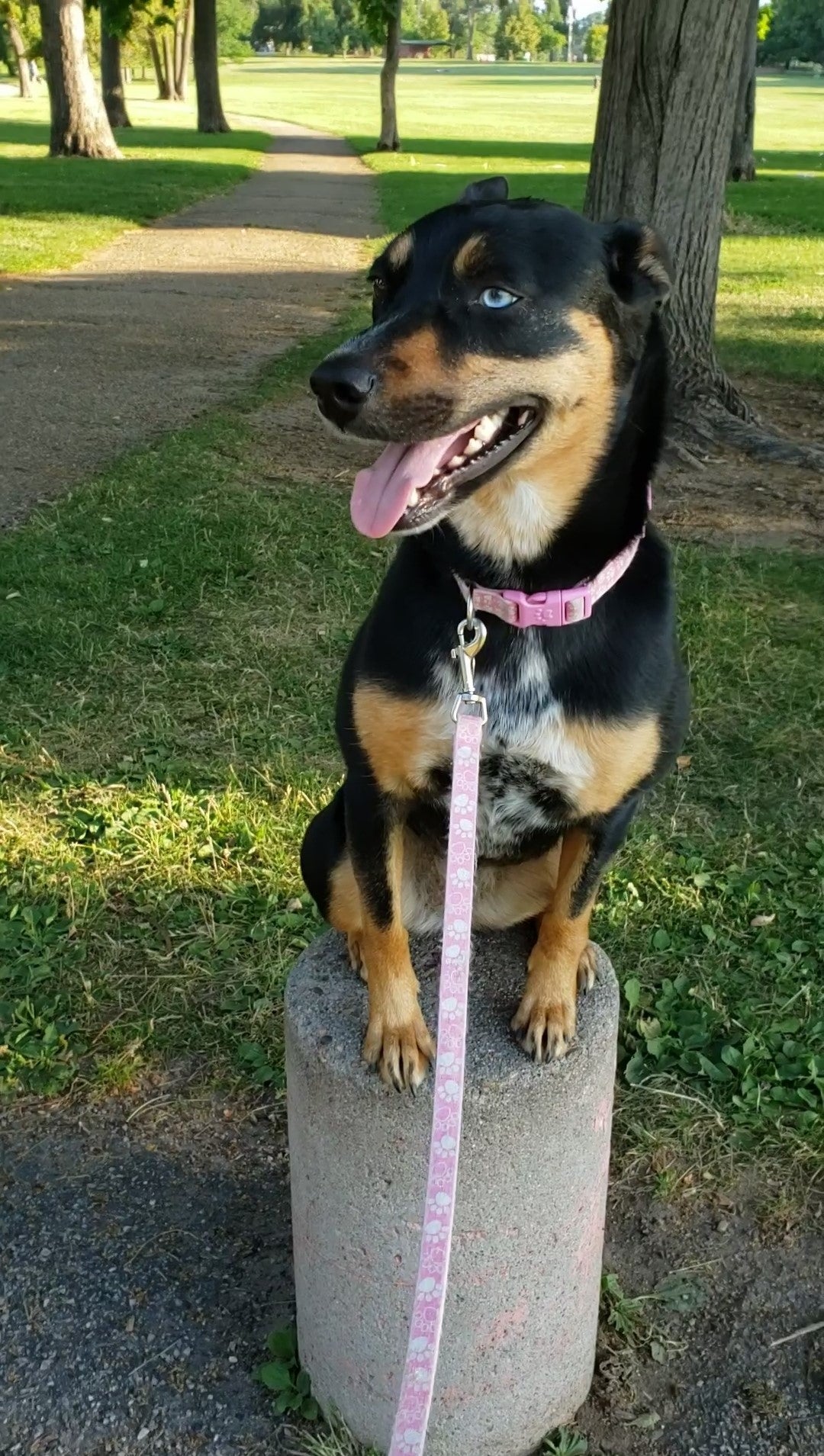 Through extensive personal training, group classes and countless individual playdates, Mochi has blossomed into a well-rounded, social pup who does wonderfully with other dogs.